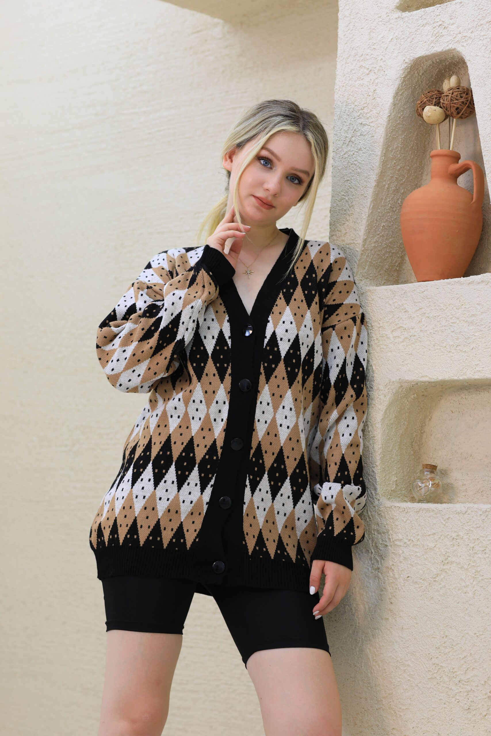 Baklava Desenli Triko Hırka