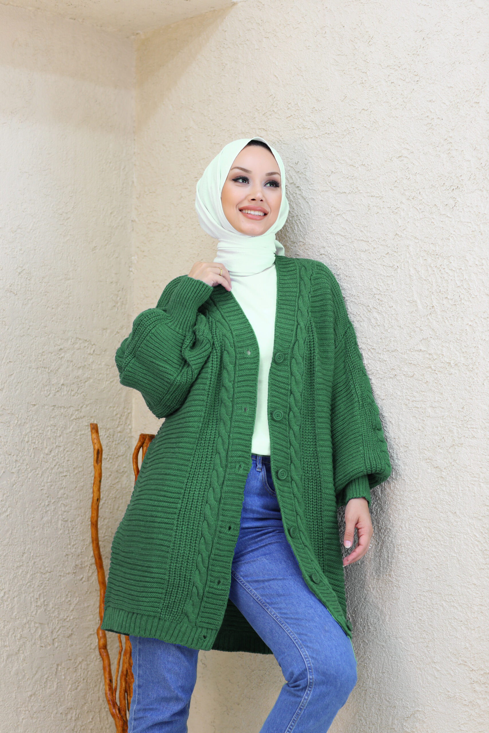 Düğme Detaylı V Yaka Uzun Hırka – Pembe