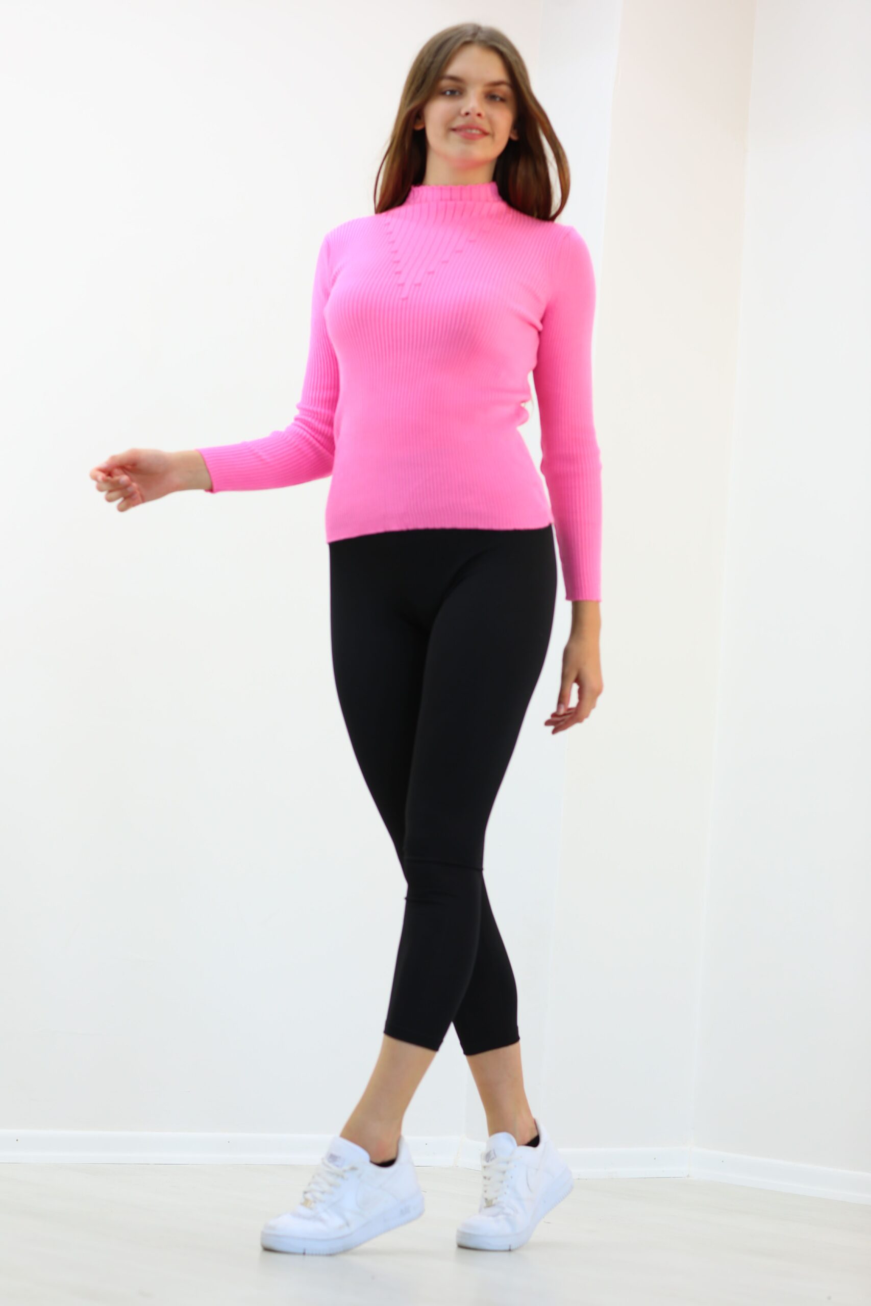 Fuşya Yarım Balıkçı Şardonlu Esnek Kaşkorse Triko Kazak