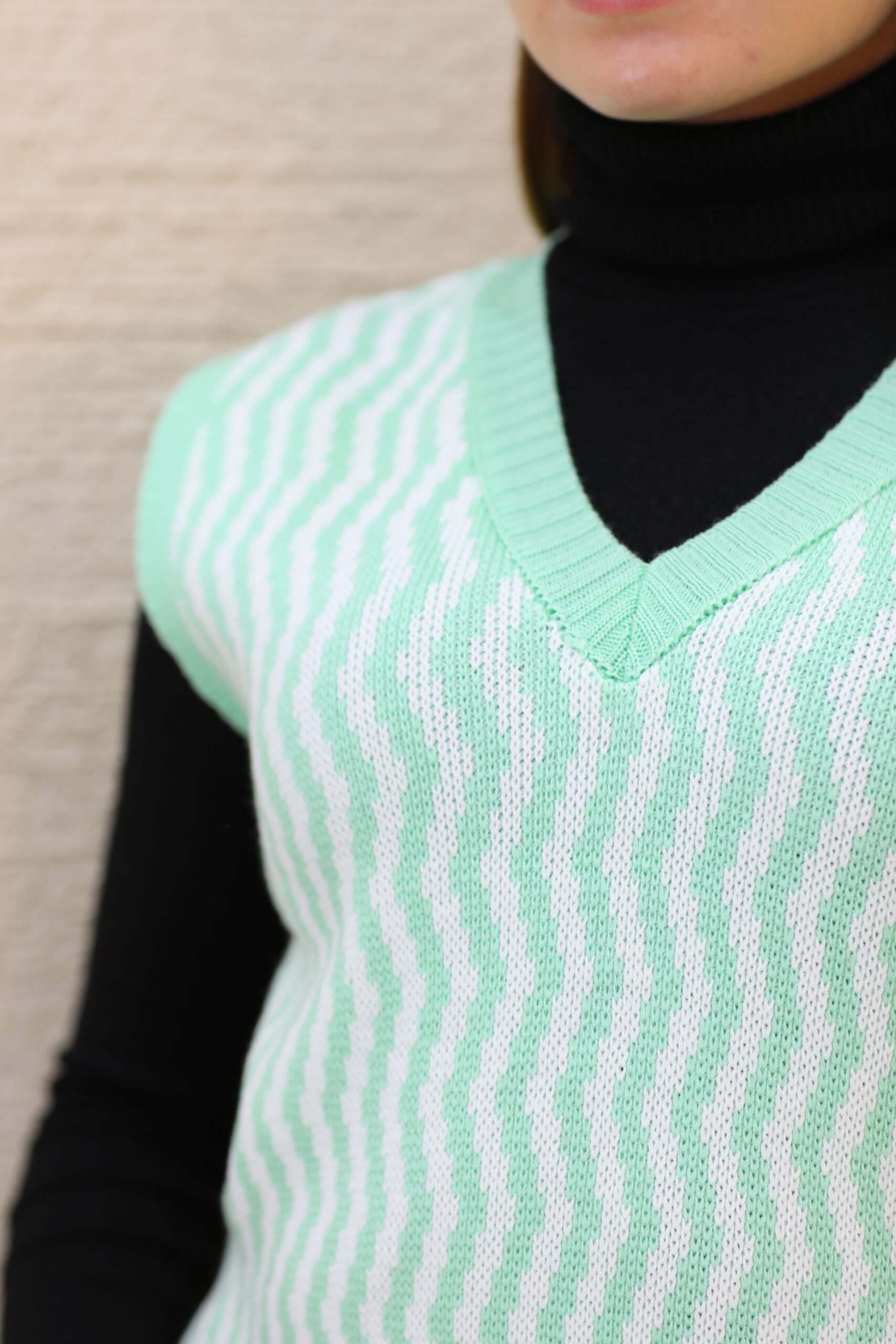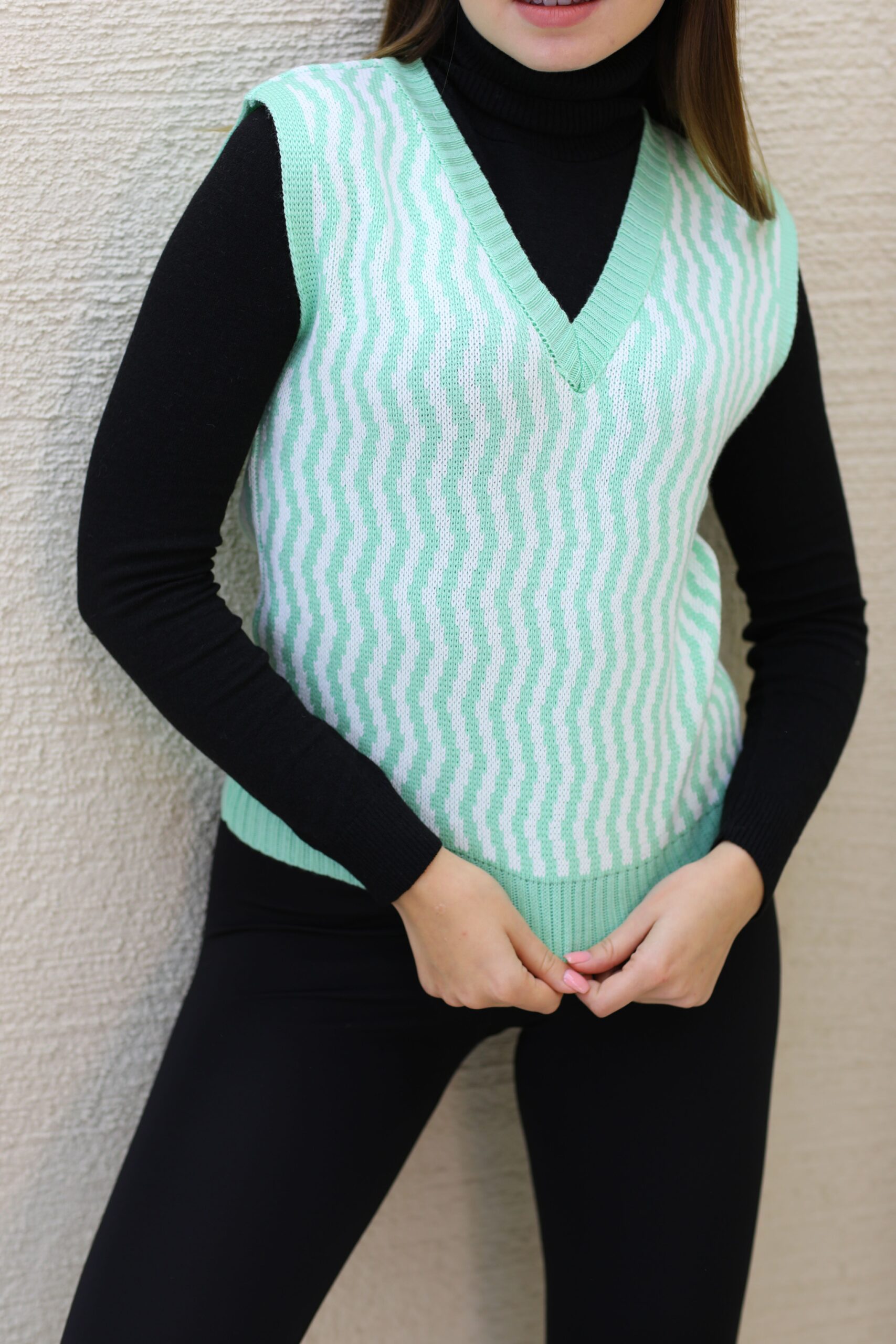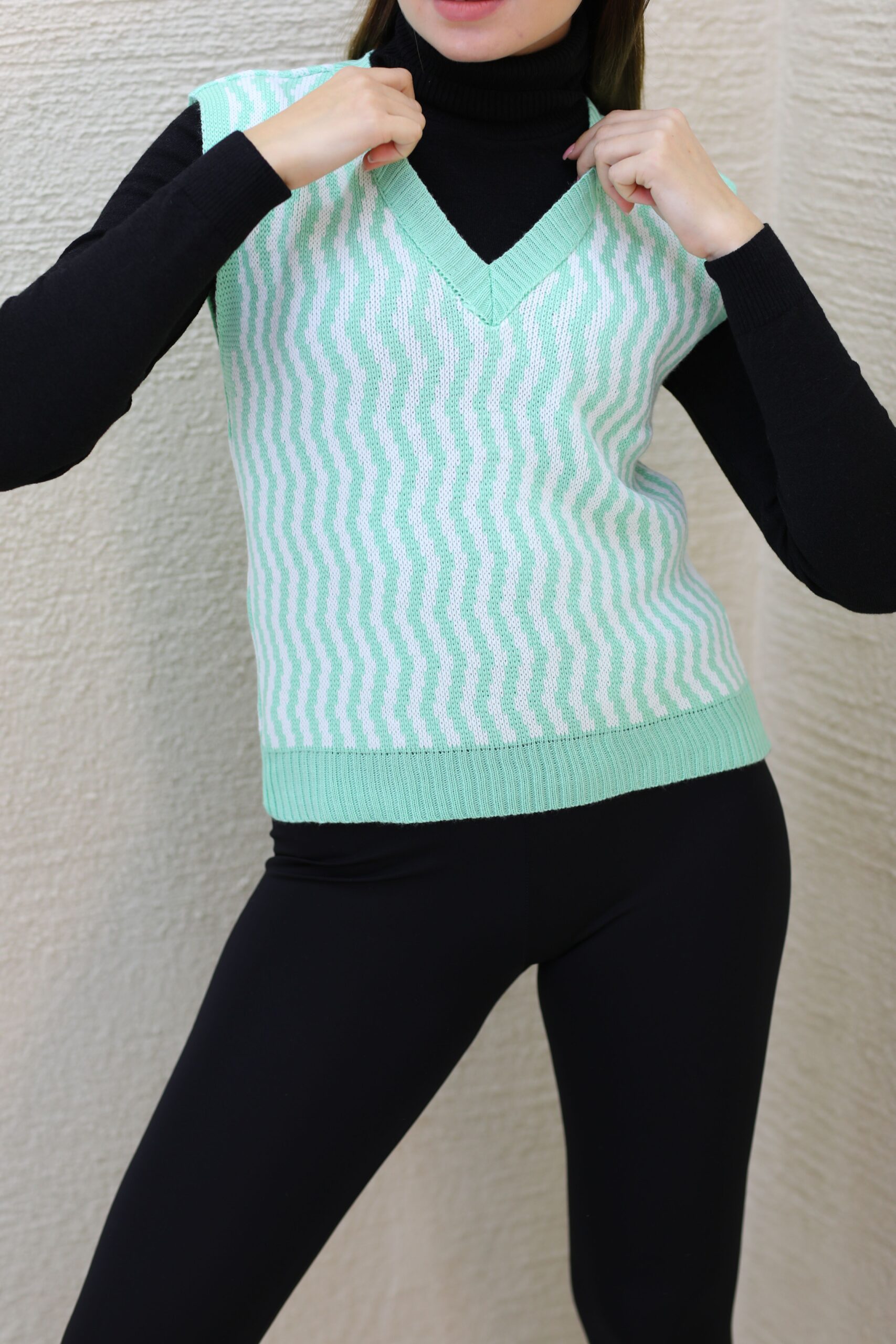 Kadın Yeşil V Yaka Triko Süveter
