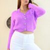 Mor Desenlı Triko kısa hırka