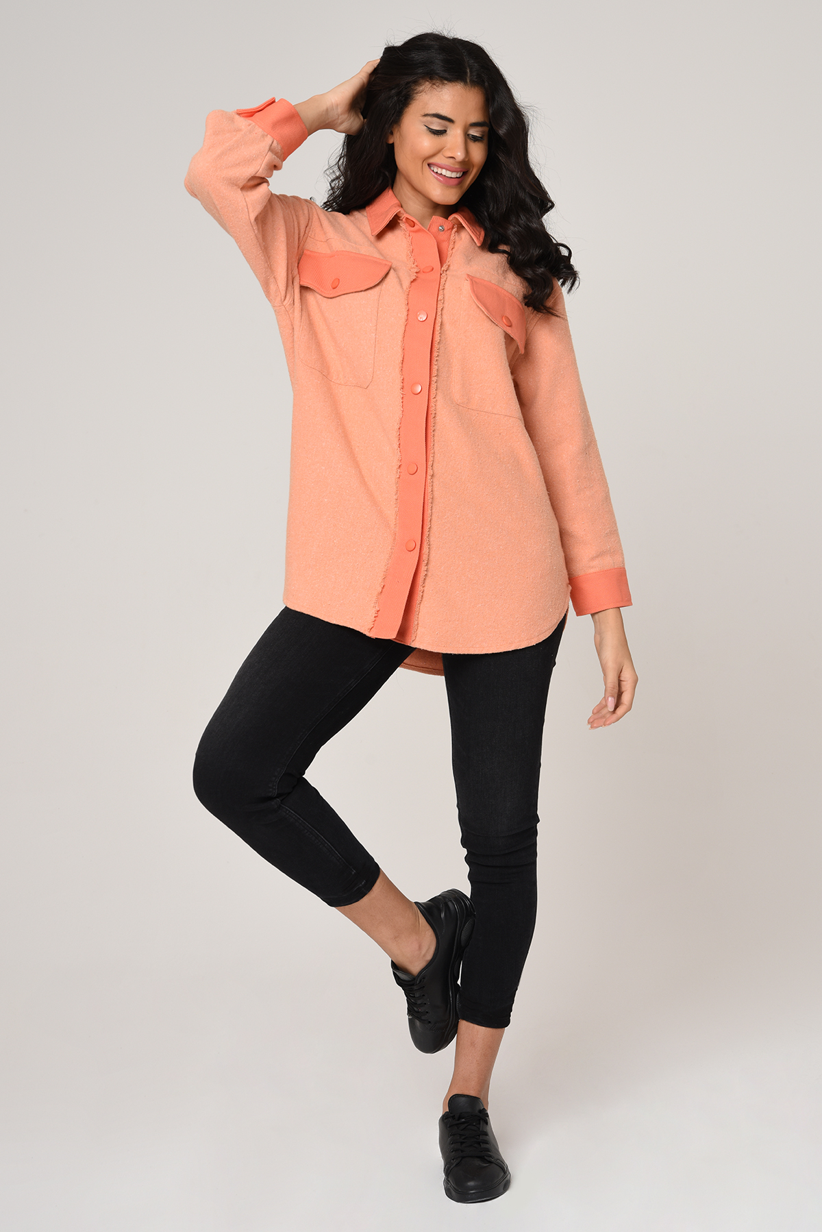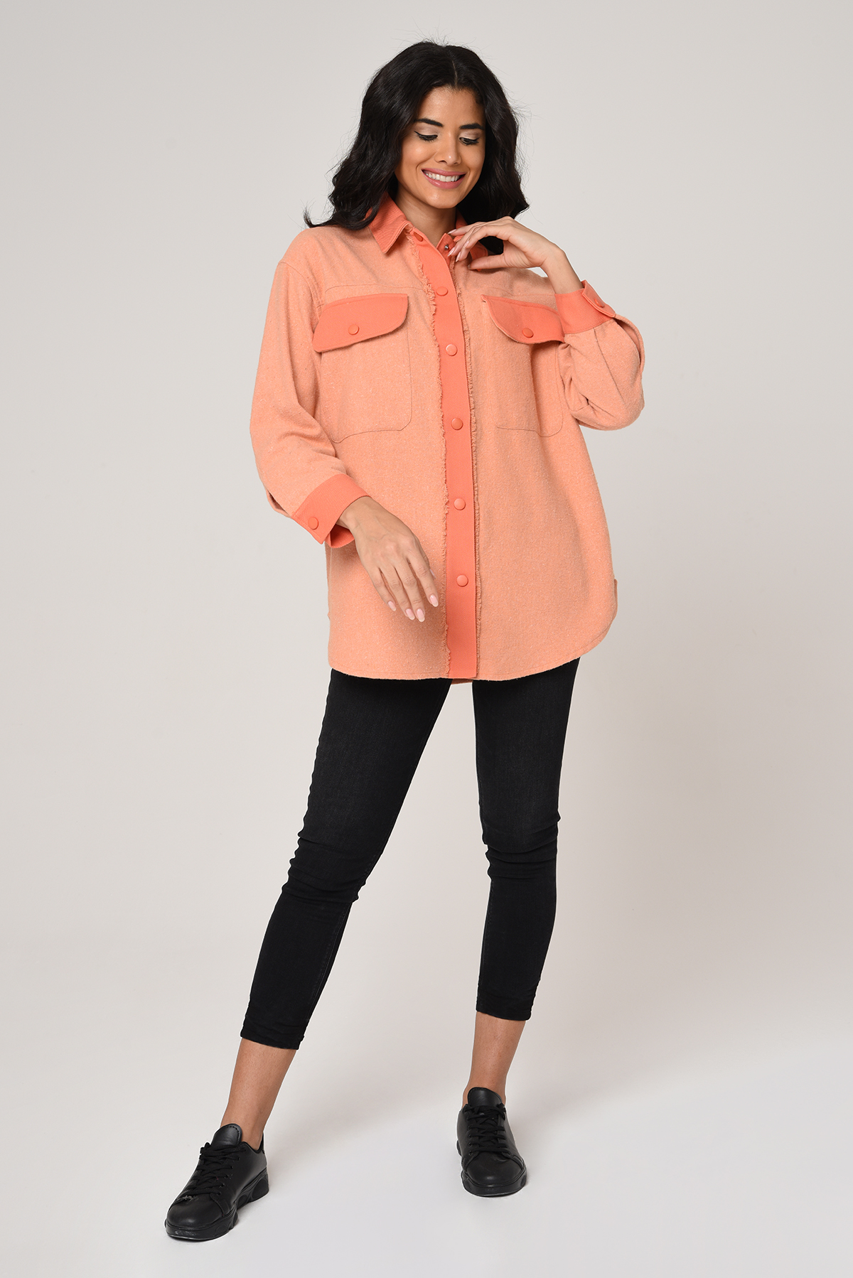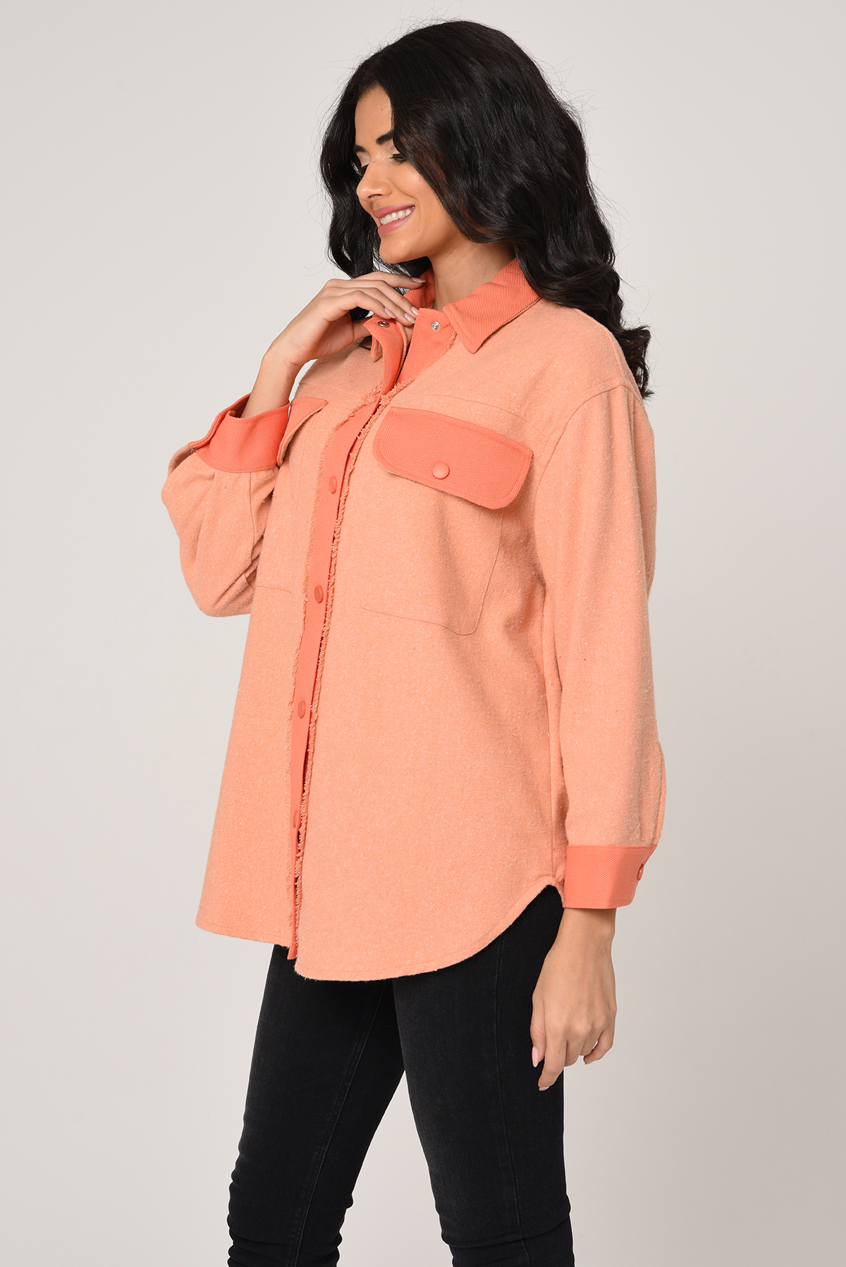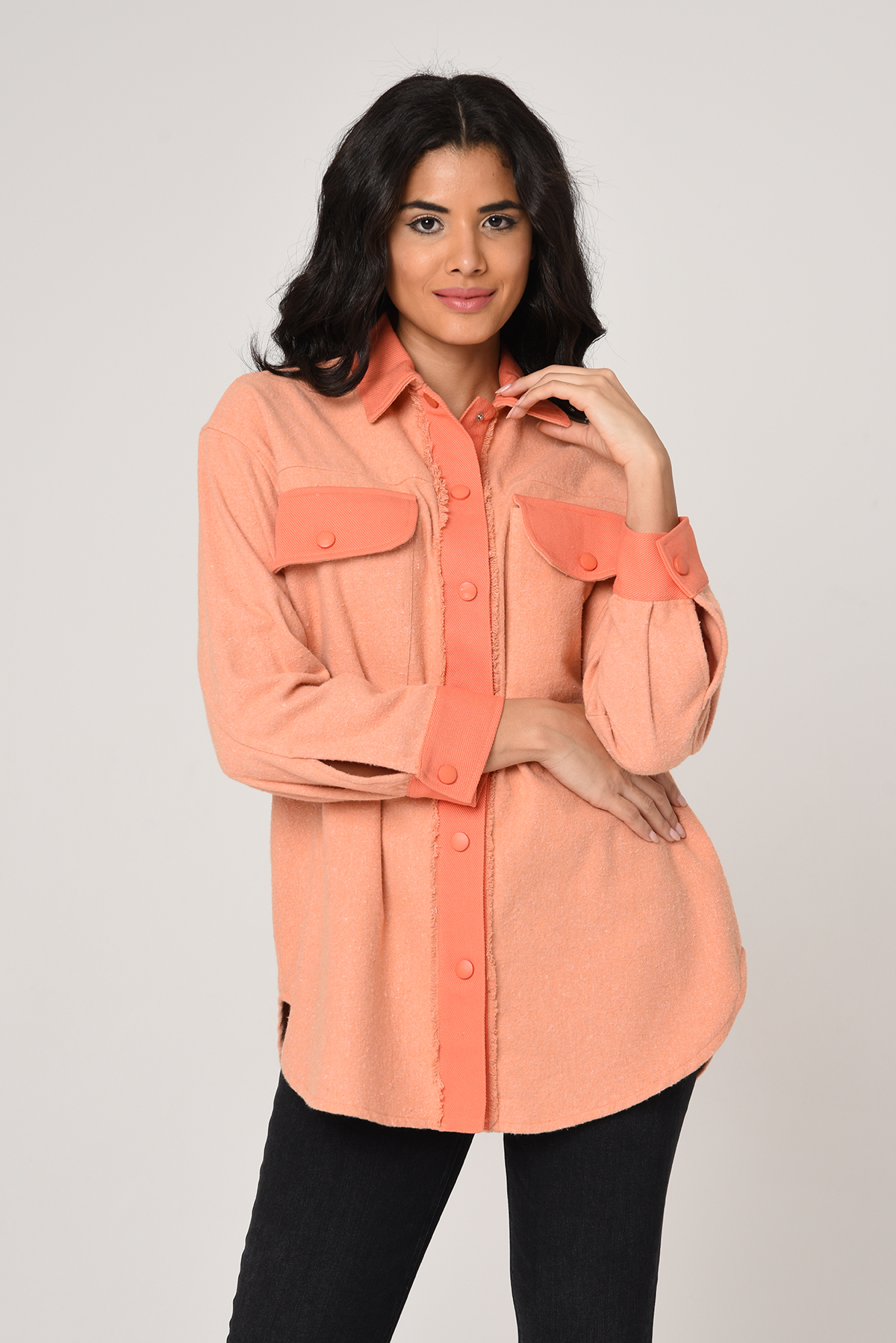 Önü çıtçıtlı, Büyük cepli iki renkli gabardin gömlek