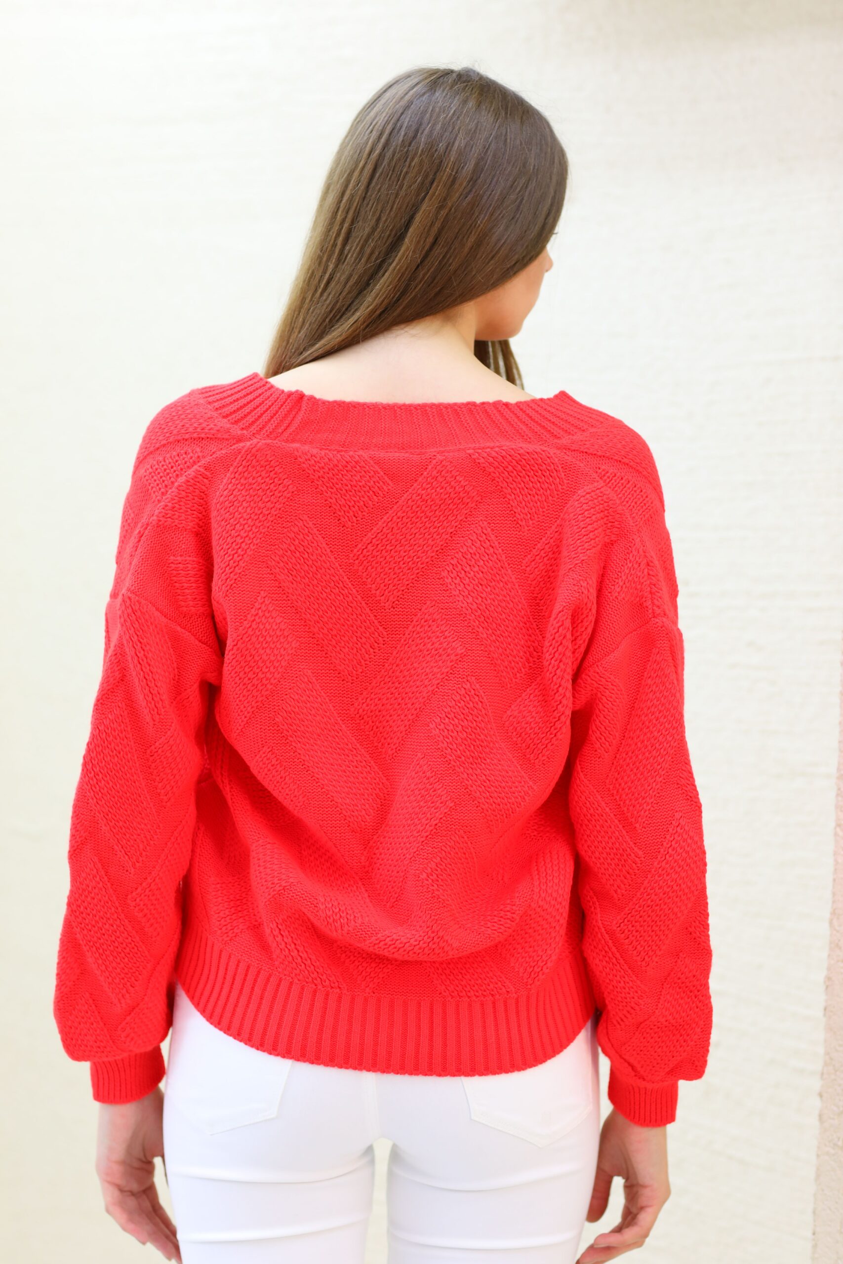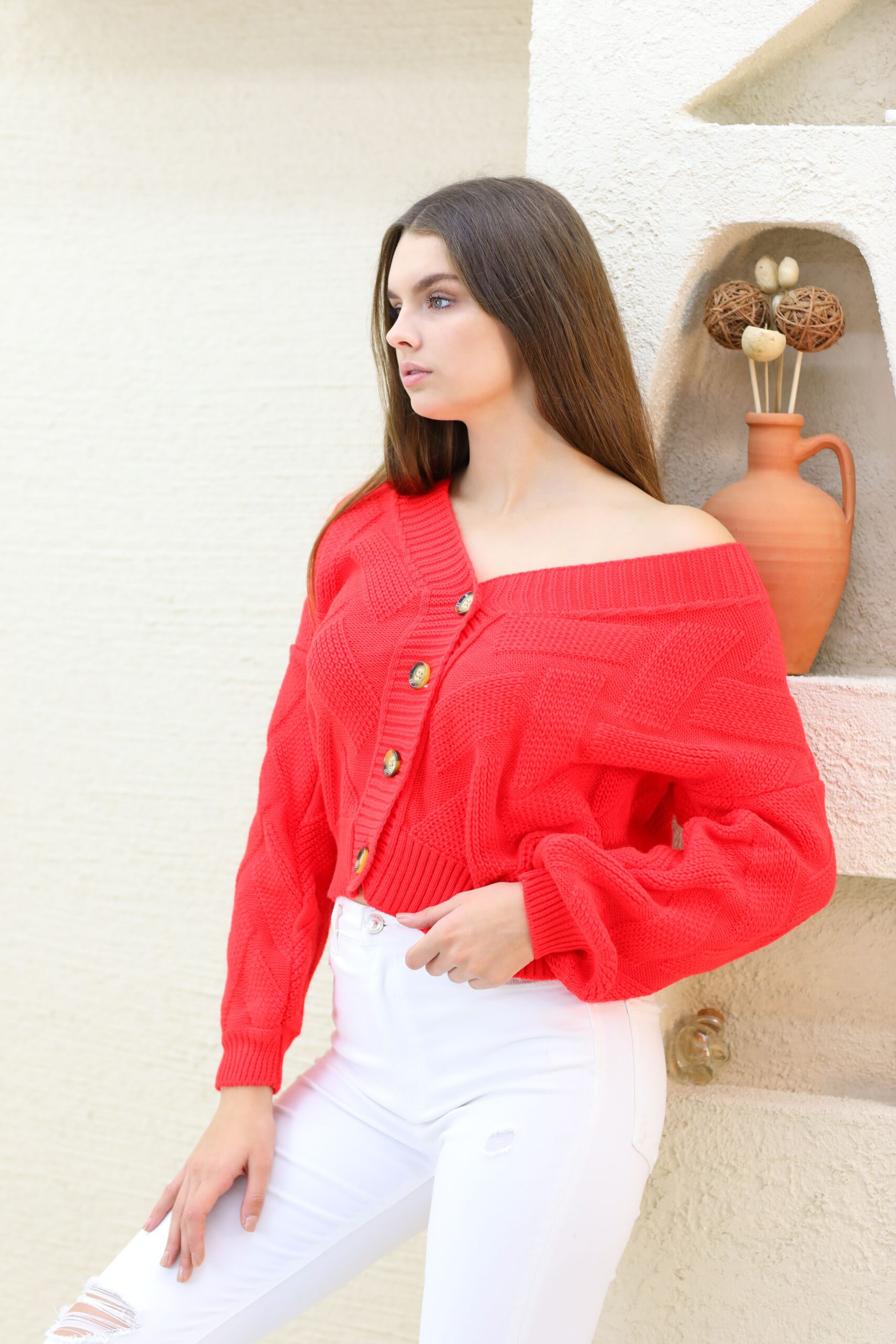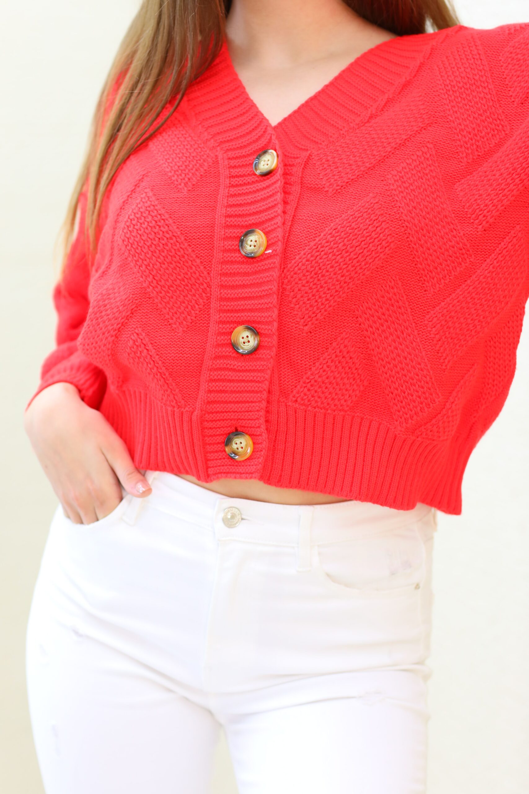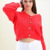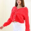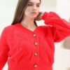 Turuncu Triko Hırka, Triko Örgü Detaylı Hırka, Hırka