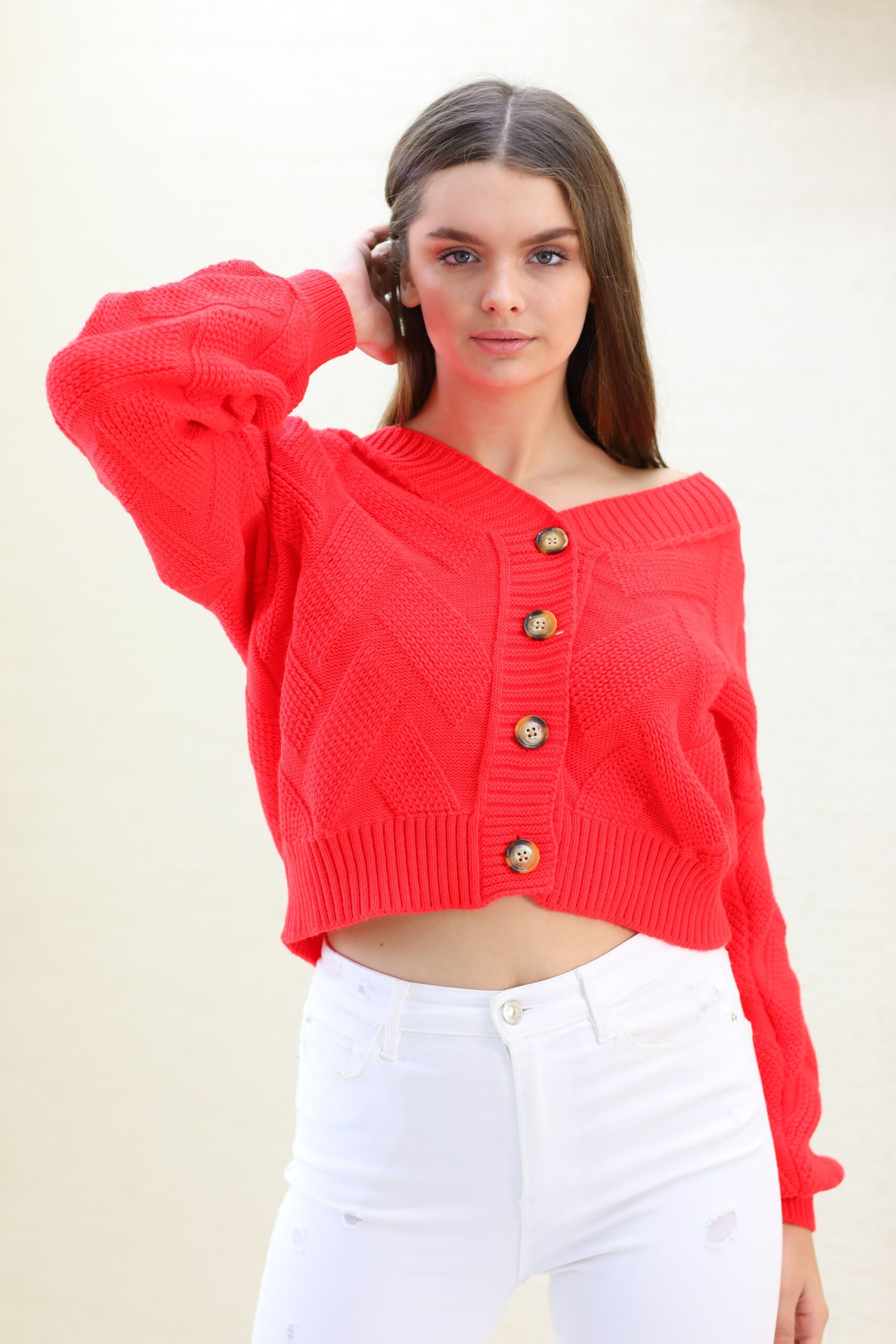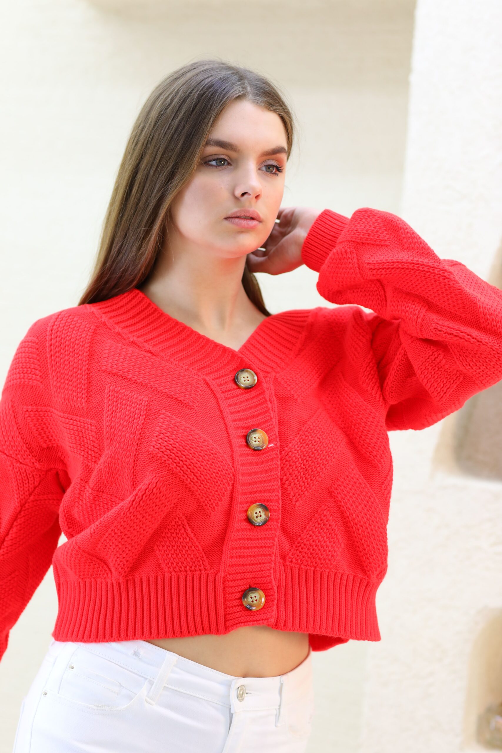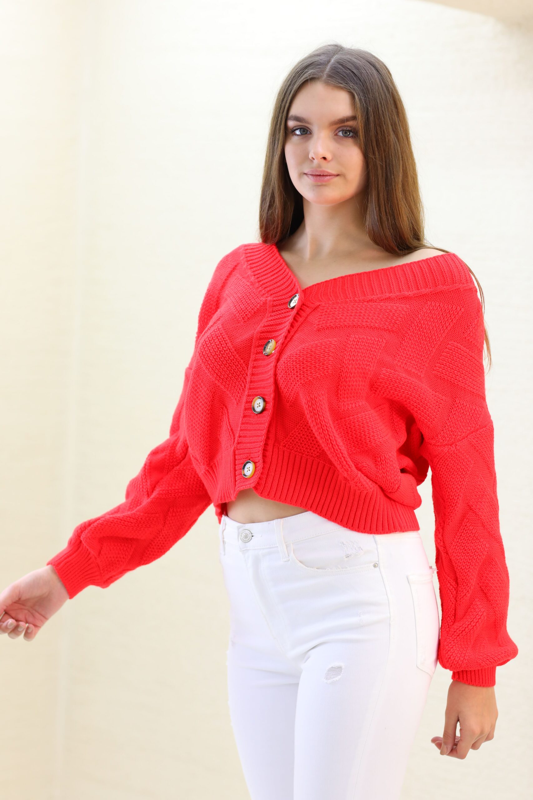 Turuncu Triko Hırka, Triko Örgü Detaylı Hırka, Hırka
