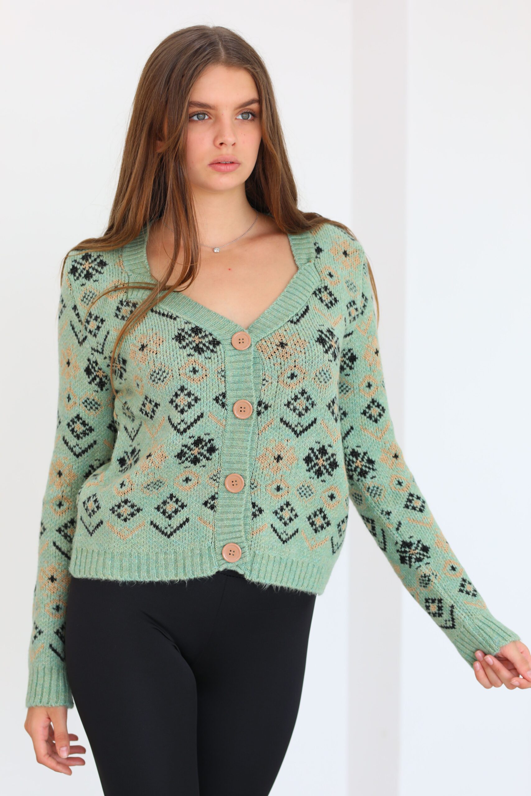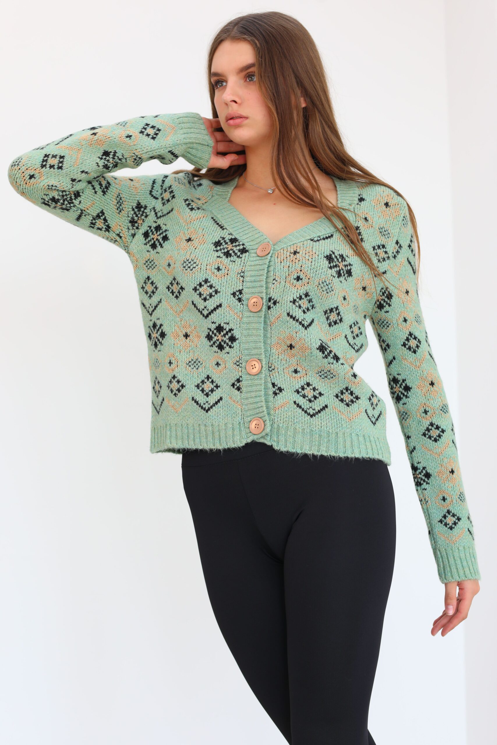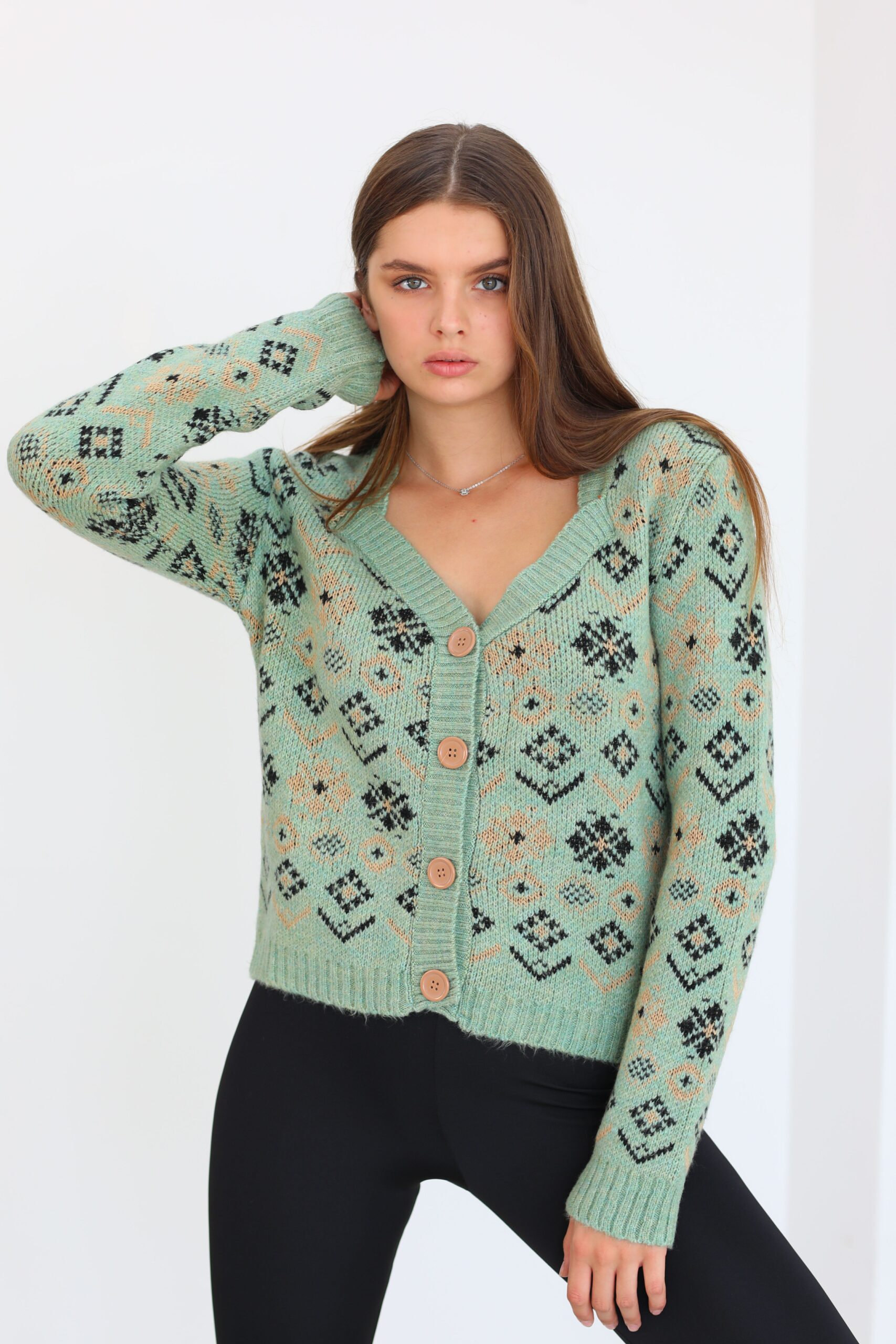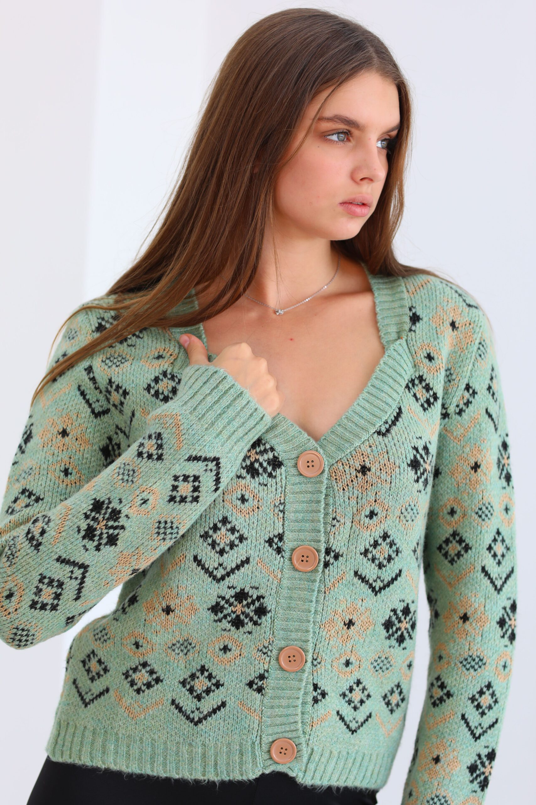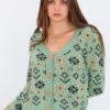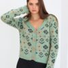 Yeşil Desenlı Triko Hırka