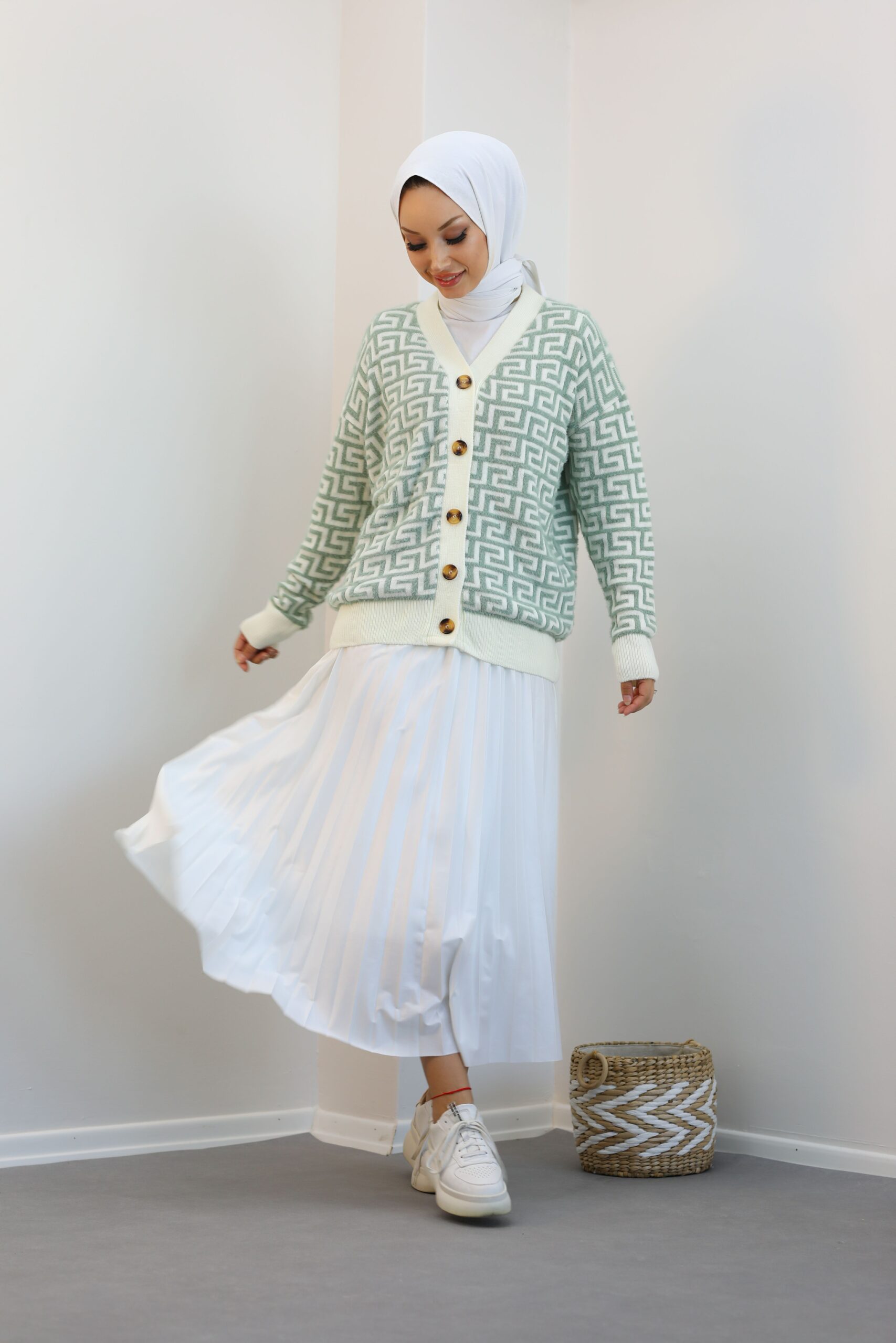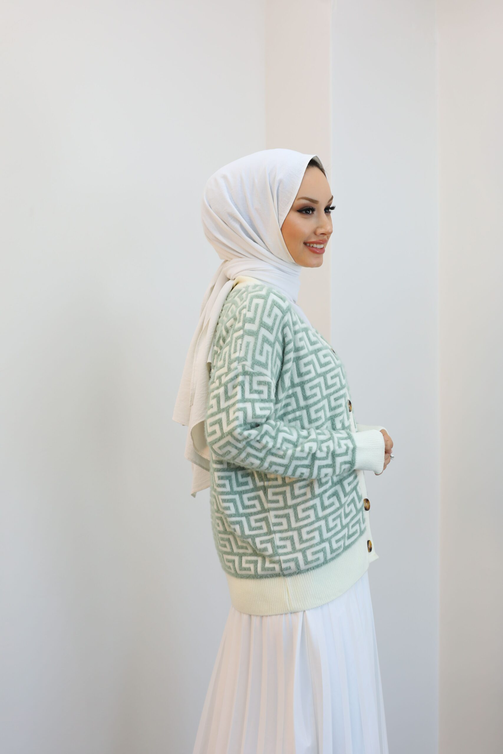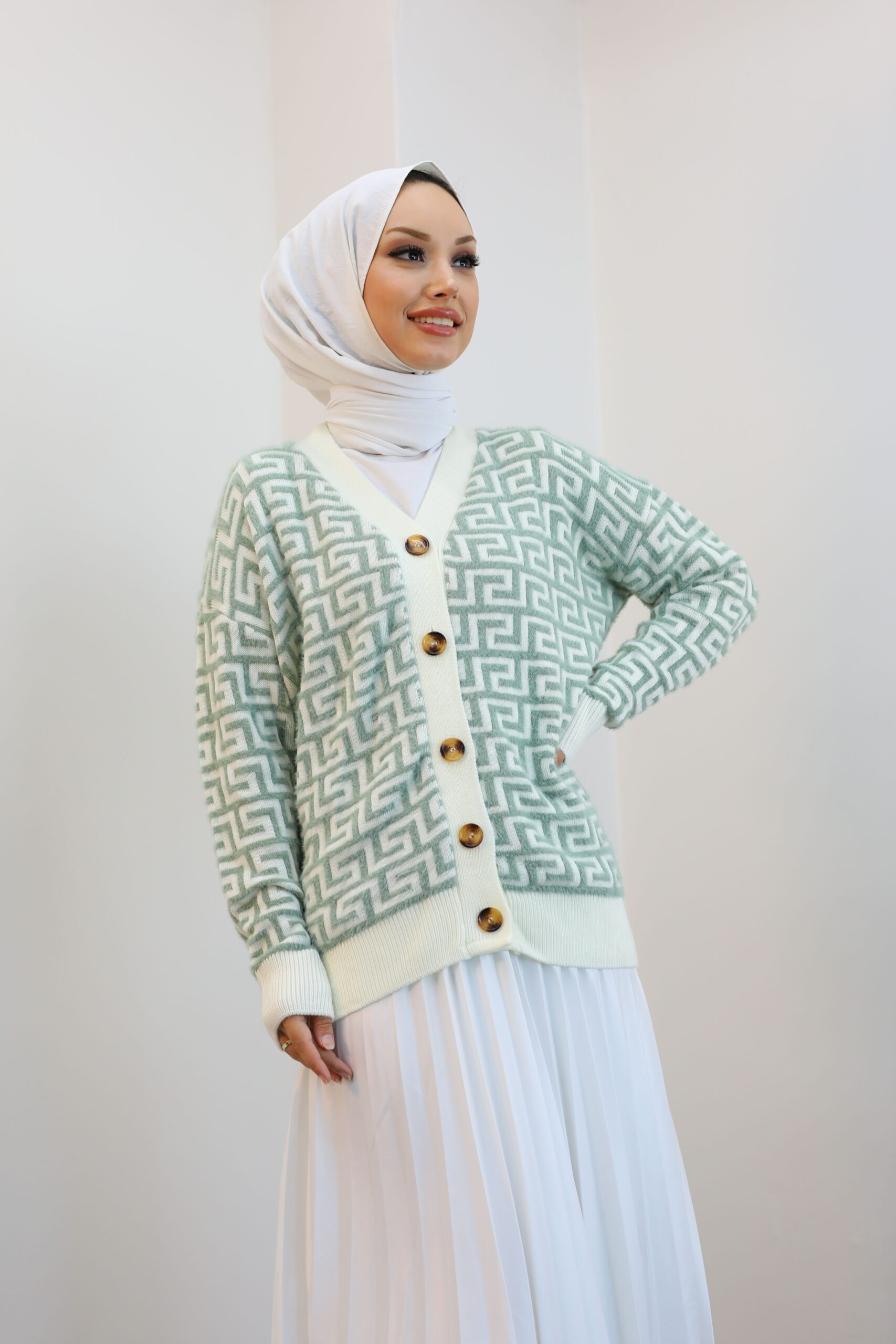 Yeşil Desenlı Triko Hırka