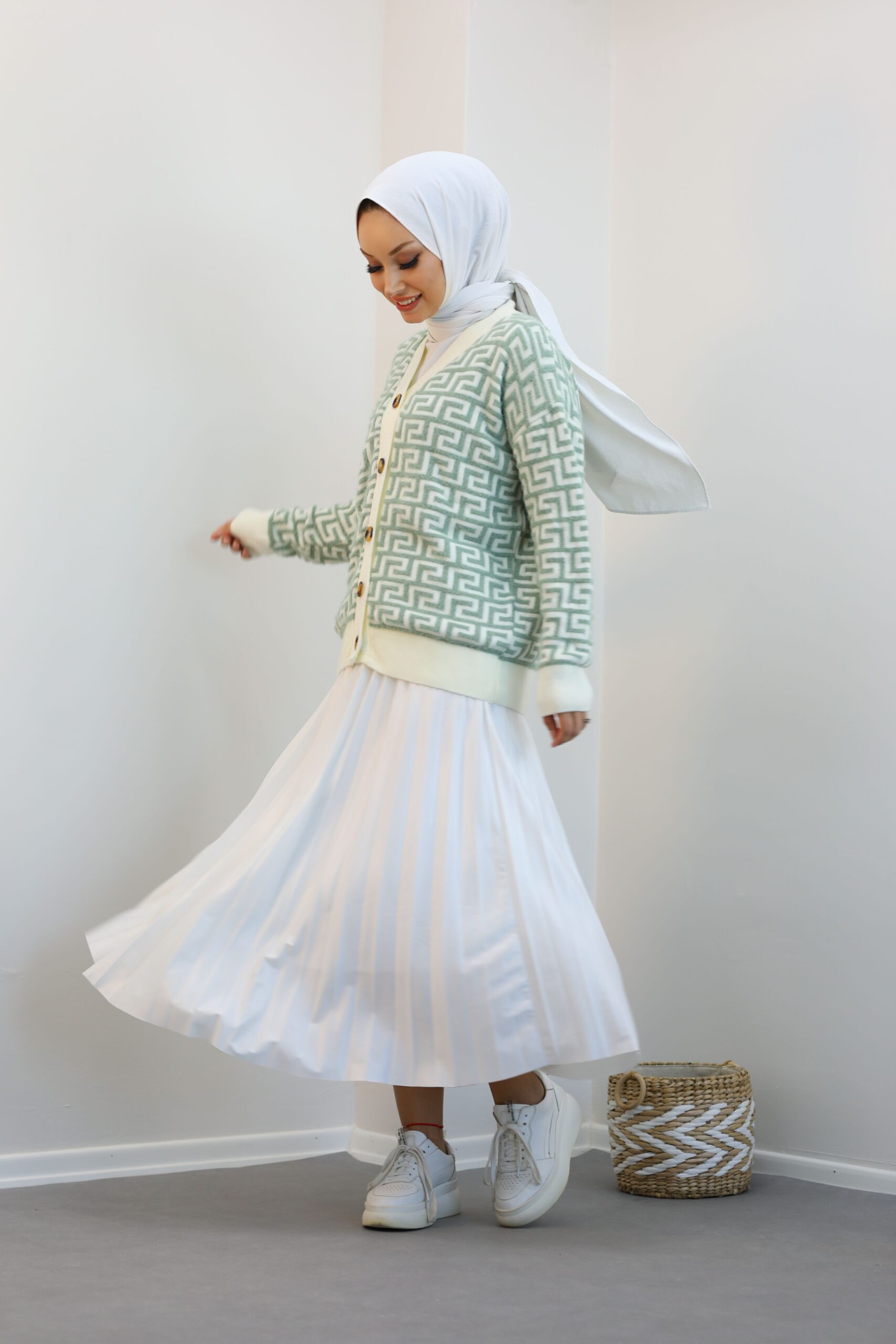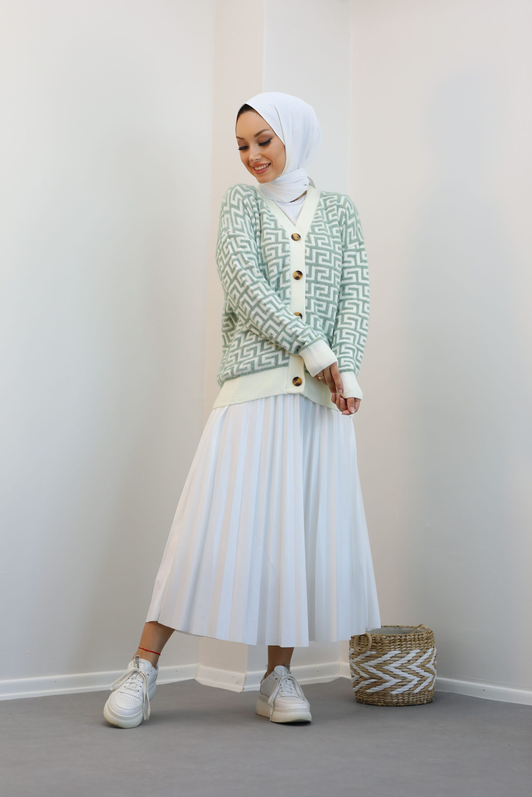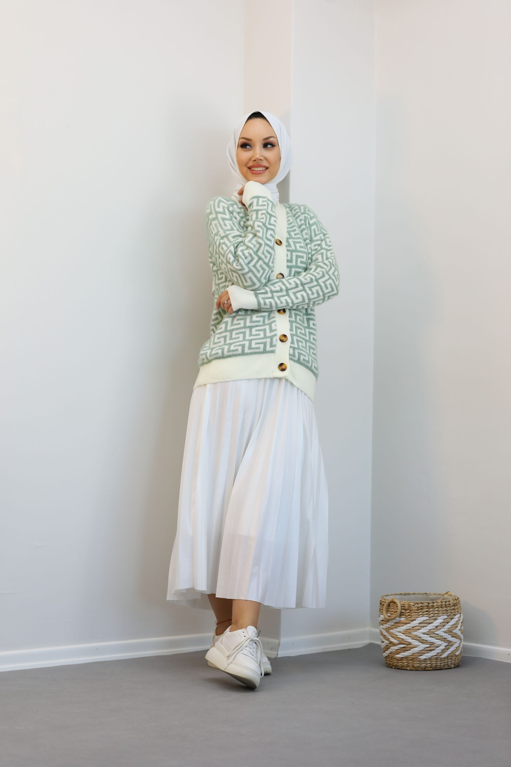 Yeşil Desenlı Triko Hırka